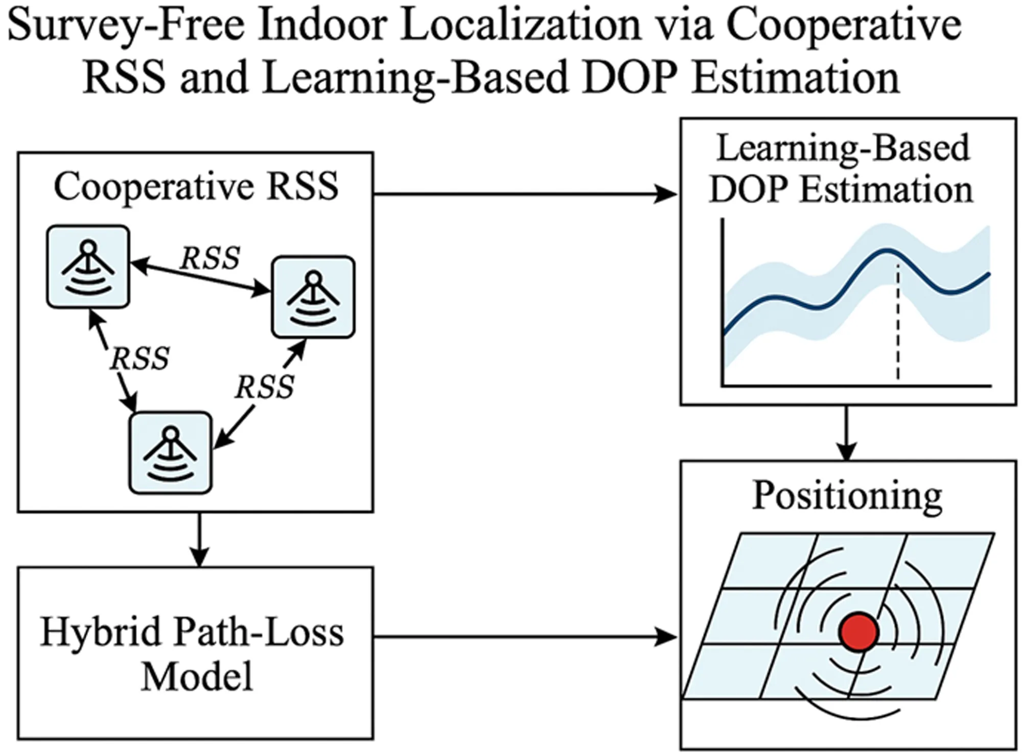 Survey-Free Indoor Localization via Cooperative RSS and Learning-Based DOP Estimation